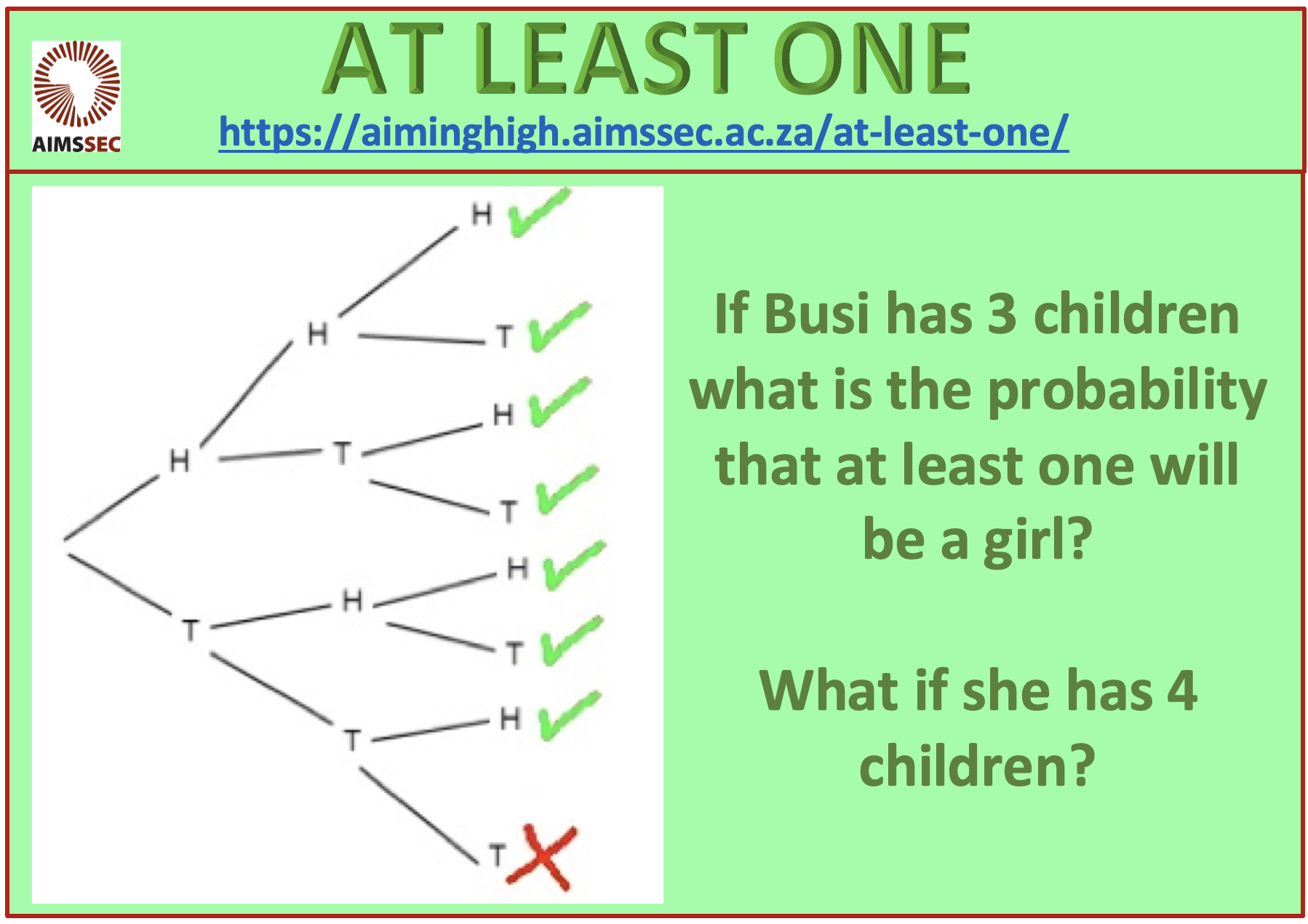 If Busi has 3 children what is the probability that at least one will be a girl?