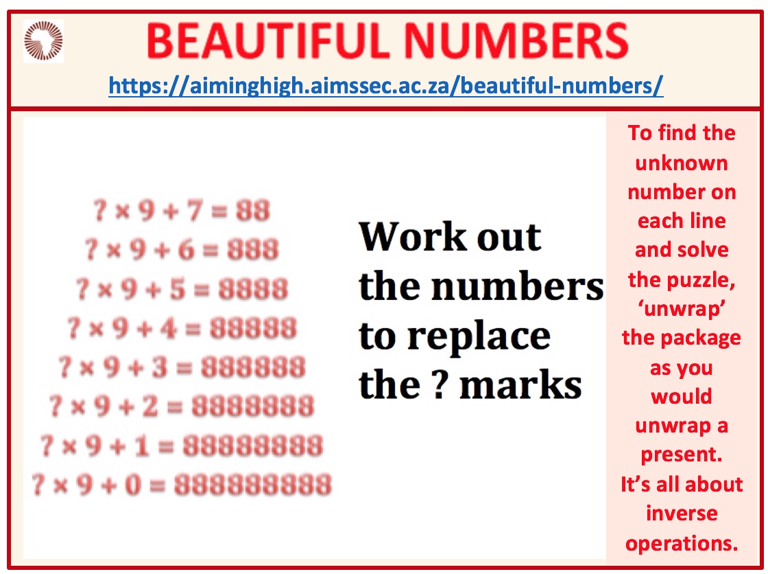 Click here to download the BEAUTIFUL NUMBERS worksheet.