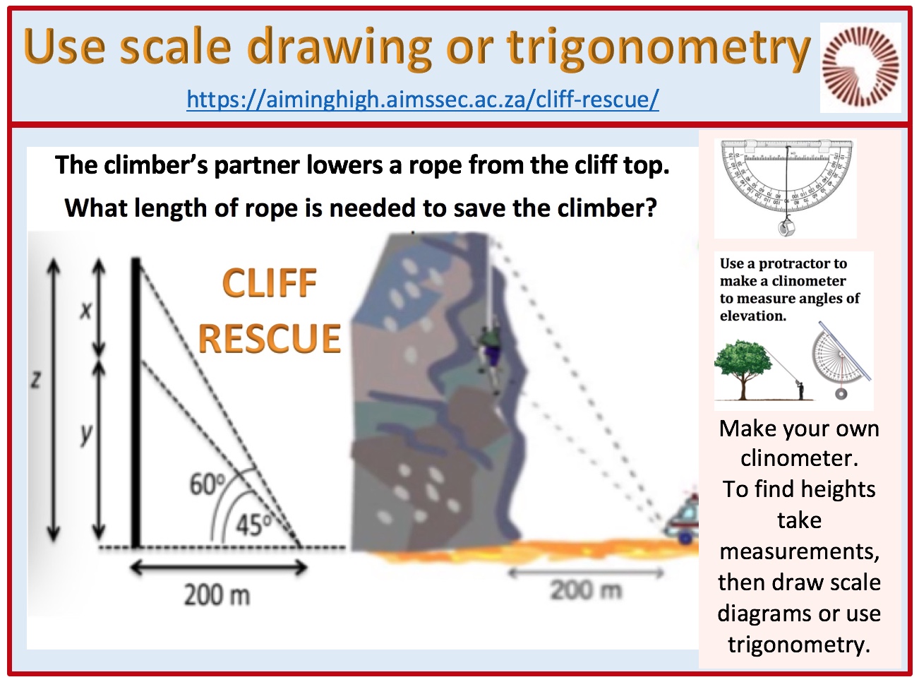 Another rescuer at the top of the cliff is going to lower a rope to the climber but he is not sure that his rope is long enough. What length of rope should he use to save the climber?