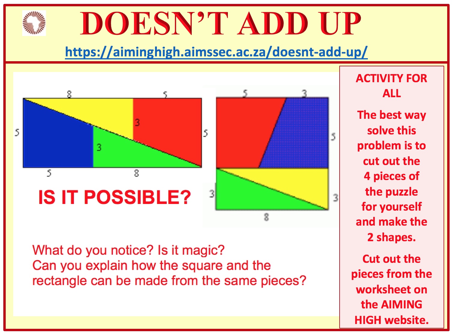 Click here to download the DOESN’T ADD UP worksheet.