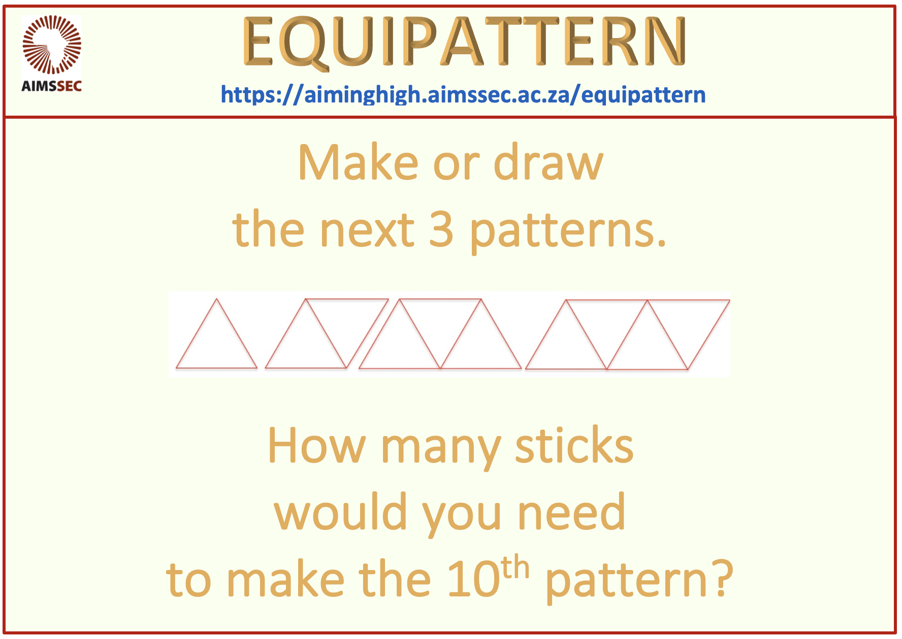 How many sticks would you need to make the 10th pattern?
