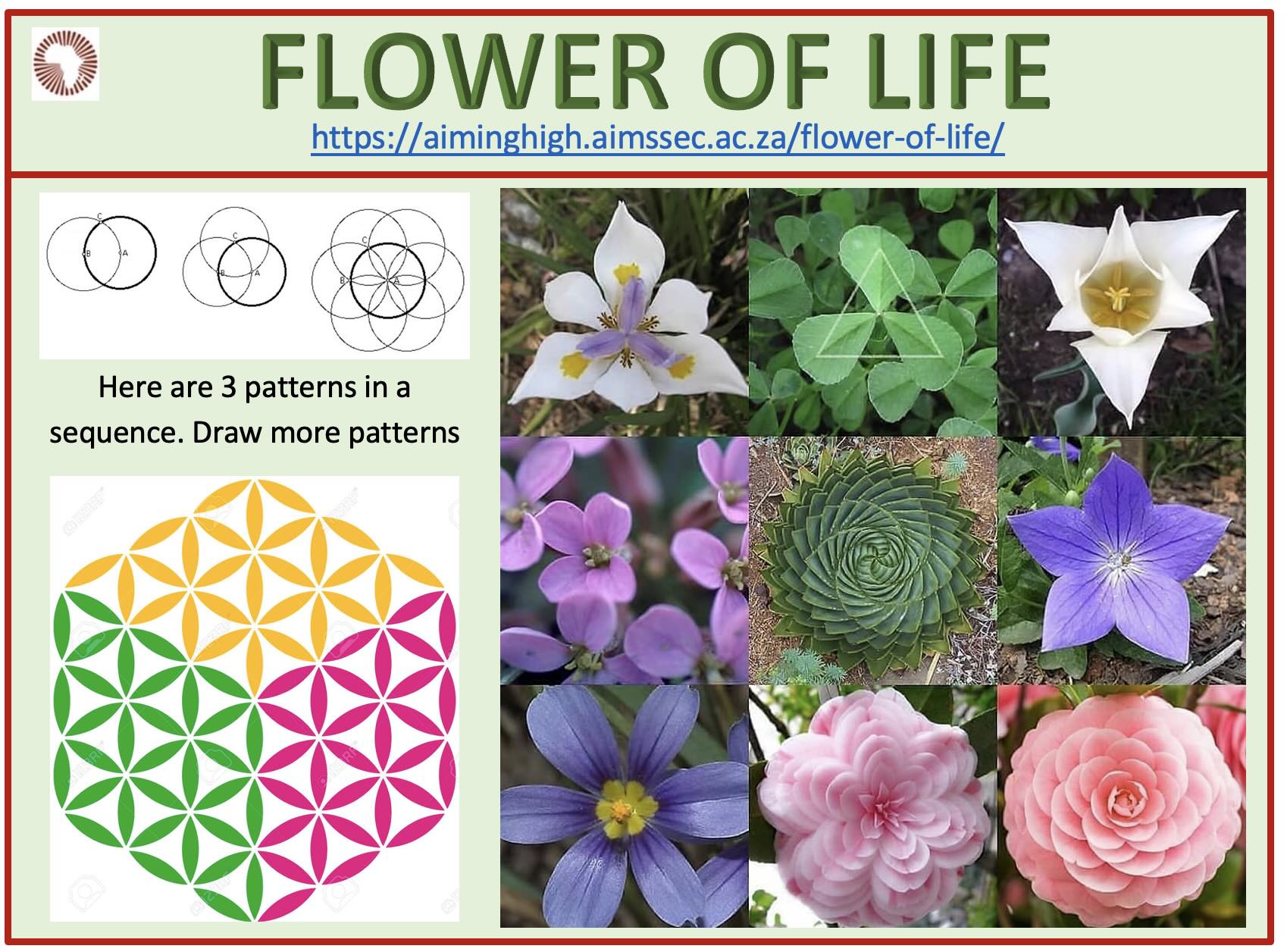 From the centre there is first one circle. The next flower pattern has 7 circles altogether and the next pattern has 19 so the sequence for the number of circles starts 1, 7, 19, …