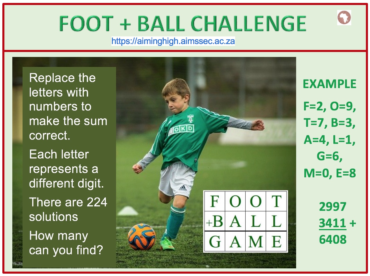 This problem is adapted from the NRICH task Football Sum with permission of the University of Cambridge. All rights reserved.