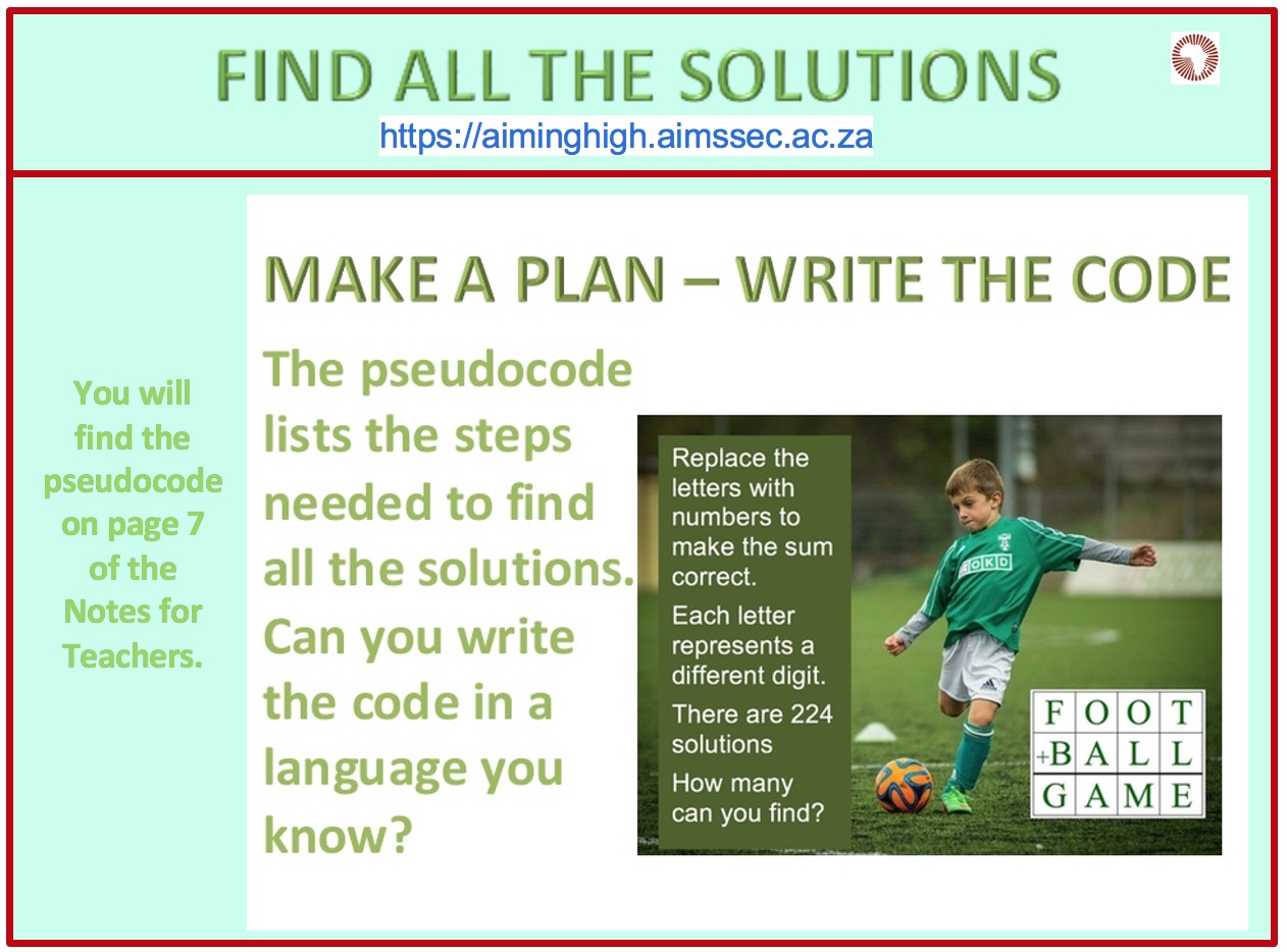 Click here to download the ‘Write the code to solve FOOTBALL CHALLENGE’ poster.