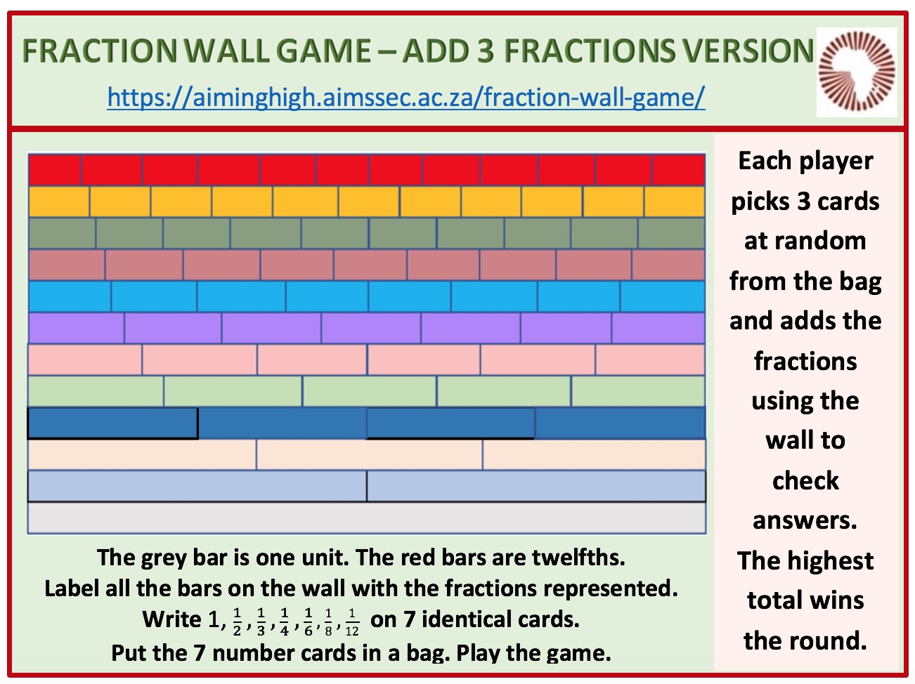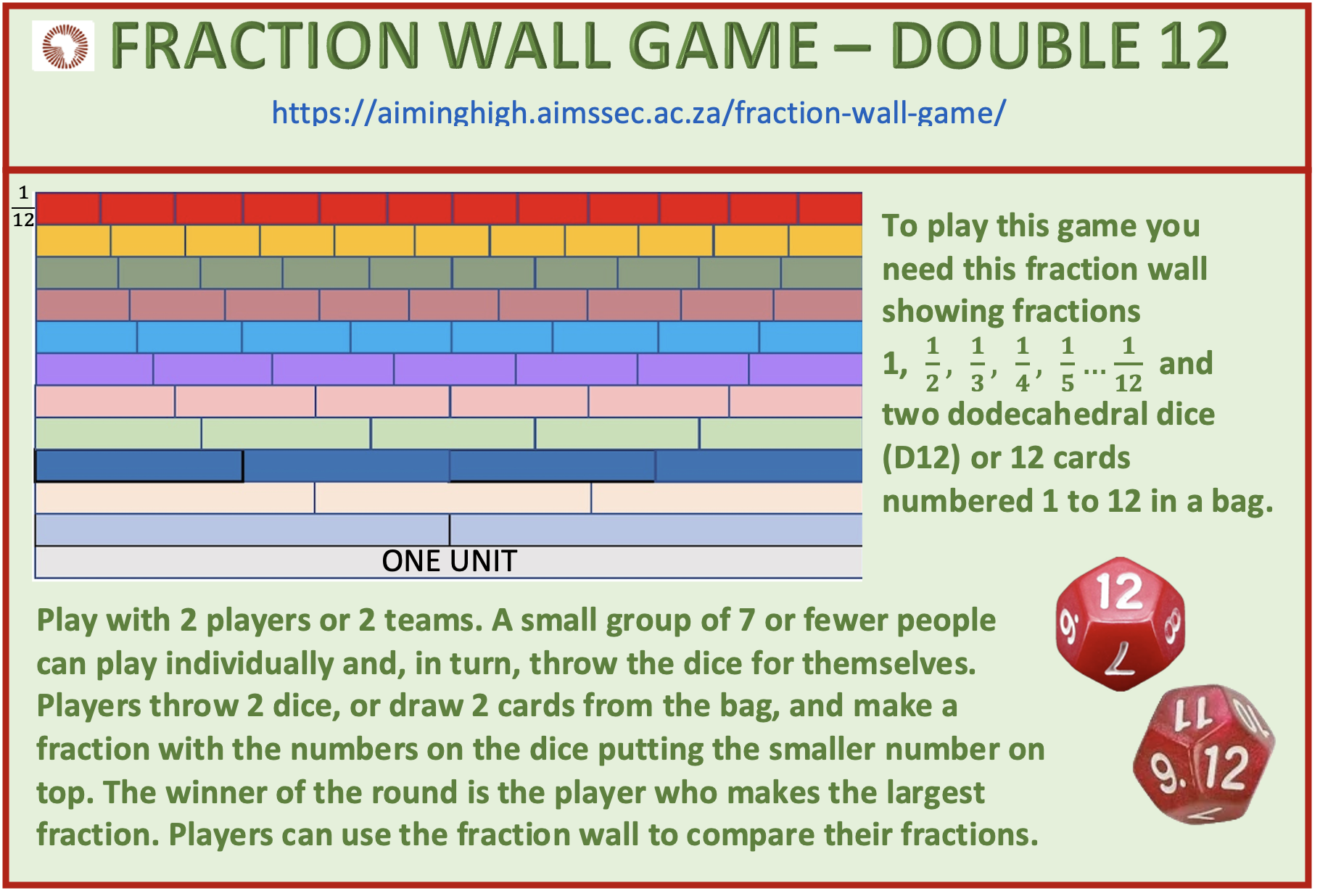 Click here for the FRACTIONS WALL GAME DOUBLE 12 poster.