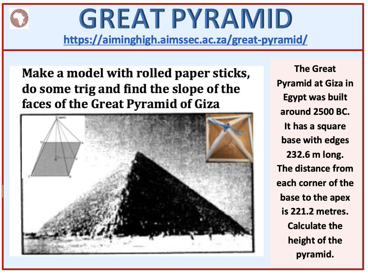 Click here for the GREAT PYRAMID worksheet.