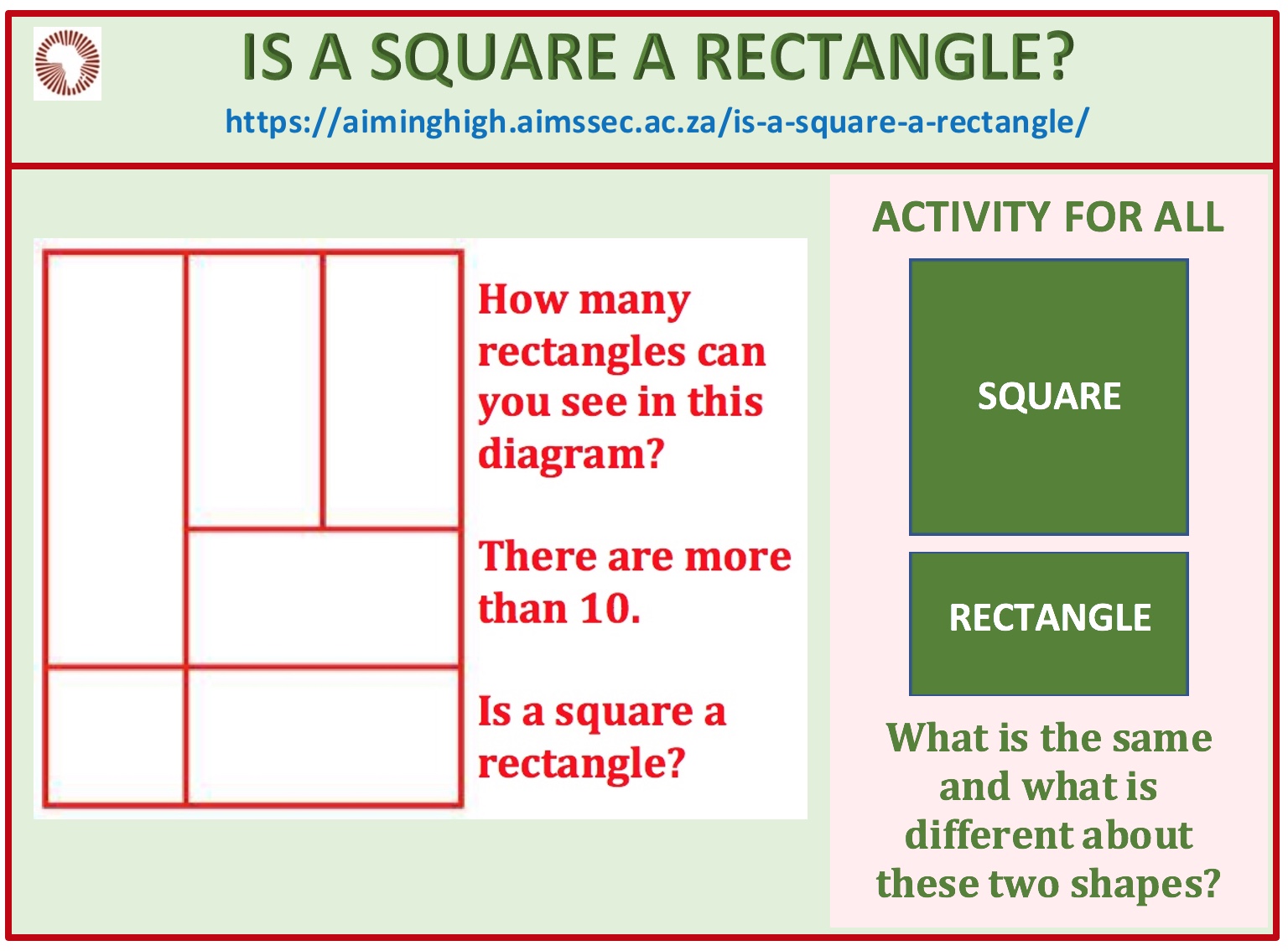 Click here to download the IS A SQUARE A RECTANGLE? worksheet.