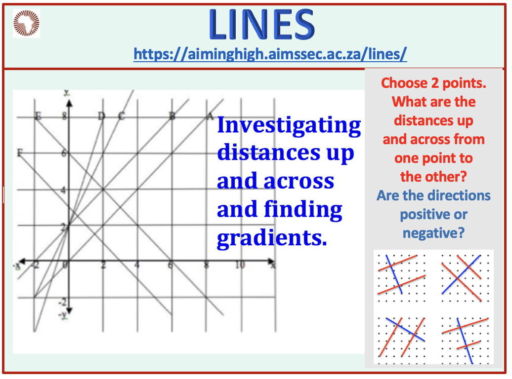 (ii) Choose two points on the line (x_1;y_1), (x_2;y_2). Find the gradient of the line from the formula m=\frac{y_2-y_1}{x_2-x_1}.