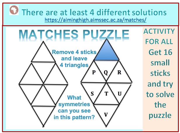 Can you make a pattern with exactly 4 triangles by removing 4 matches? Can you do this in more than one way?