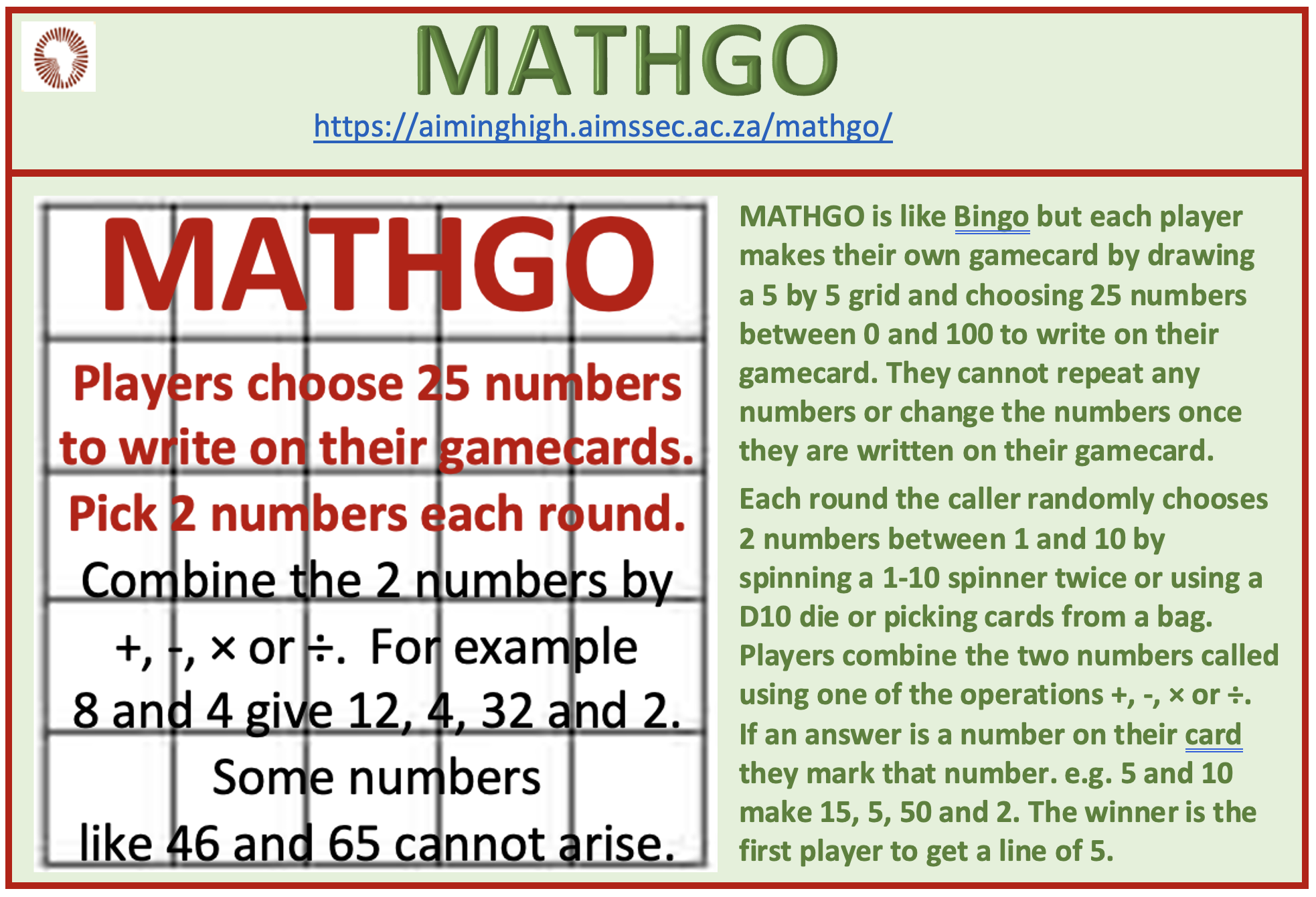 Click here to download the MATHGO worksheet