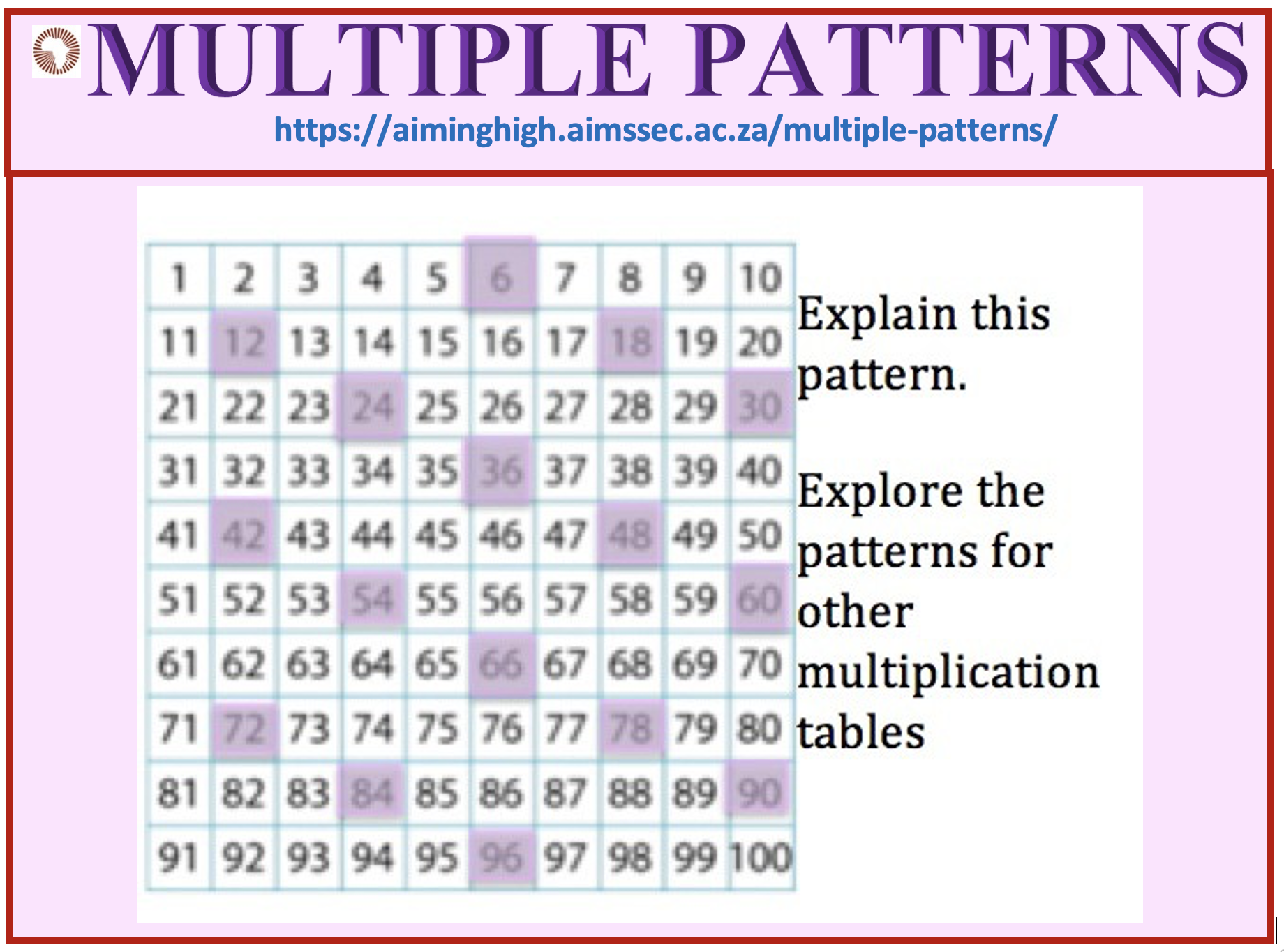 Click here to download the MULTIPLE PATTERNS worksheet.