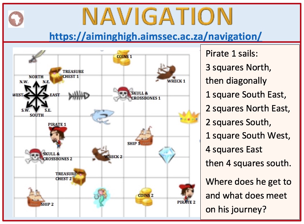 The NAVIGATION Inclusion and Home Learning Guide offers related learning activities on the theme of Up Down Left or Right (directed distances) suitable for learners of all abilities and all ages from 5 to 18+.