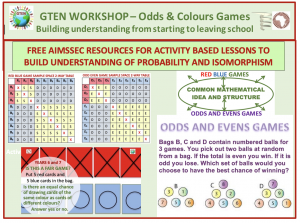 Click here for the GTEN workshop video that provides learning activities and  simple games to  teach about  finding sample spaces, constructing contingency tables and comparing mathematical structurs.