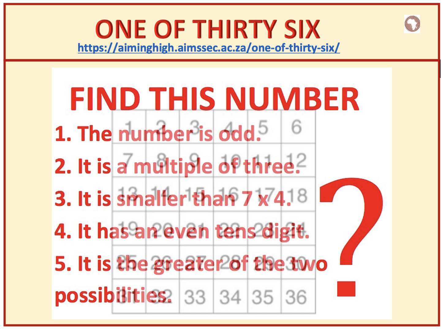 Click here to download the ONE OF THIRTY SIX worksheet.