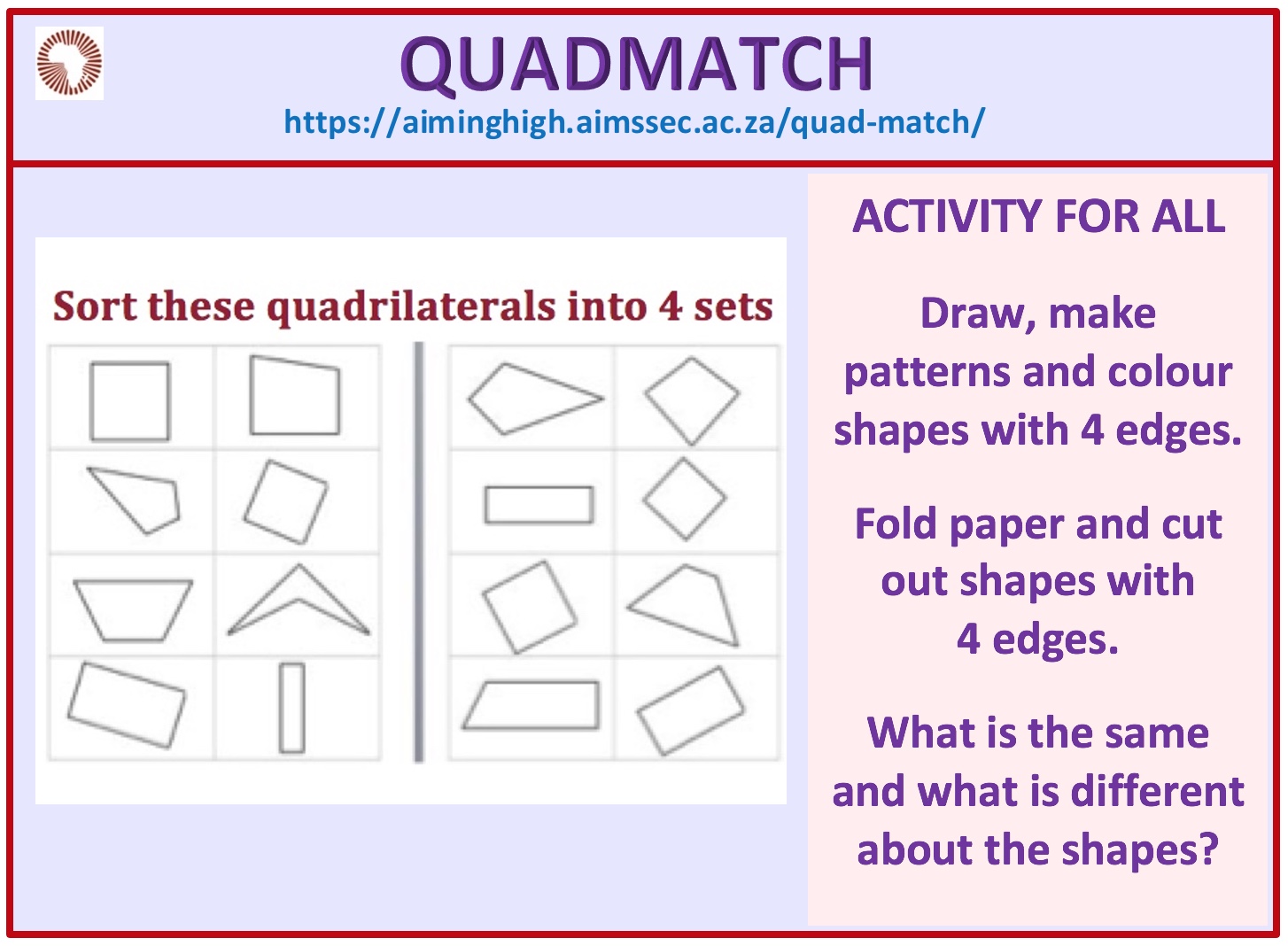 This problem is adapted from the NRICH task QUAD MATCH with permission of the University of Cambridge. All rights reserved. Download the cards