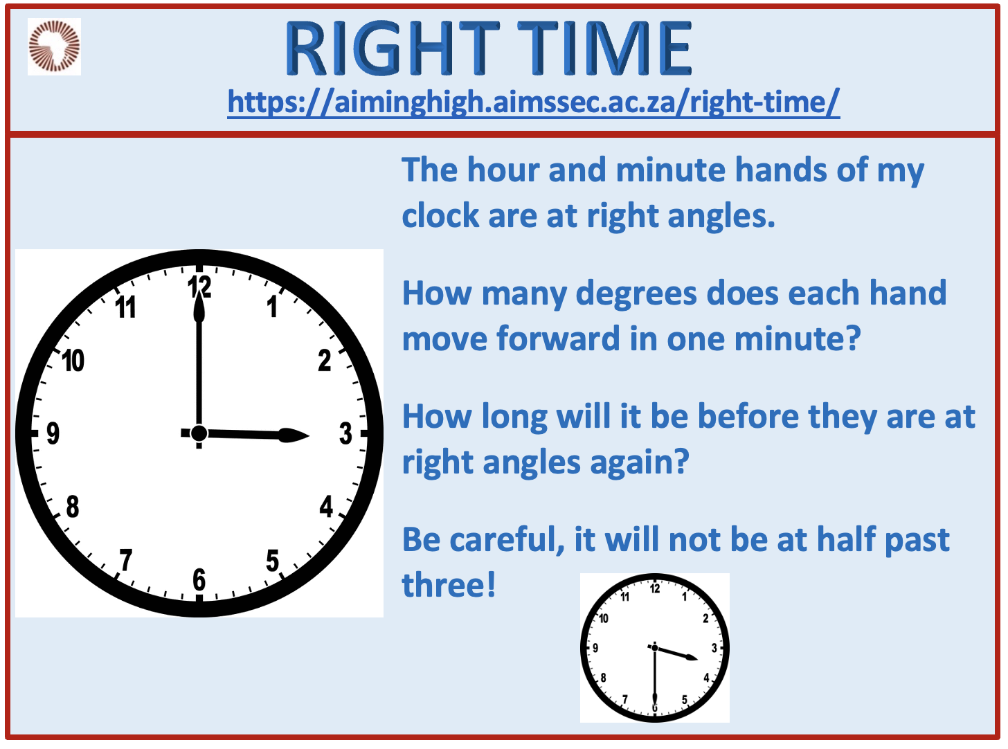 This problem is adapted from the NRICH task Right Time with permission of the University of Cambridge. All rights reserved.