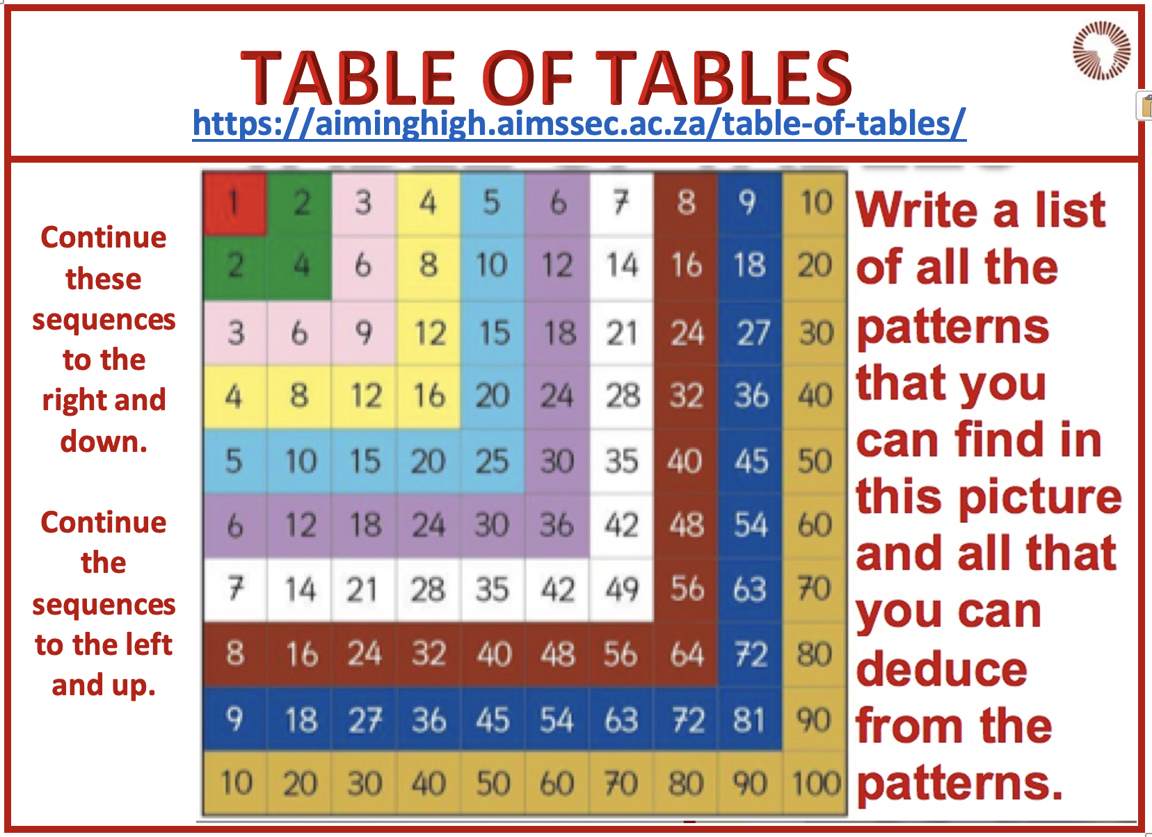 What patterns do you notice in this table?
