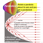 Click here for the GTEN workshop video that provides learning activities and suggestions for building understanding of parabolas and quadratic functions. Start with noticing flight paths, and a workout using arms to show the shape of parabolas, then parabaloids and applications in searchlights and telescopes, quadratic functions, graphs and equations.