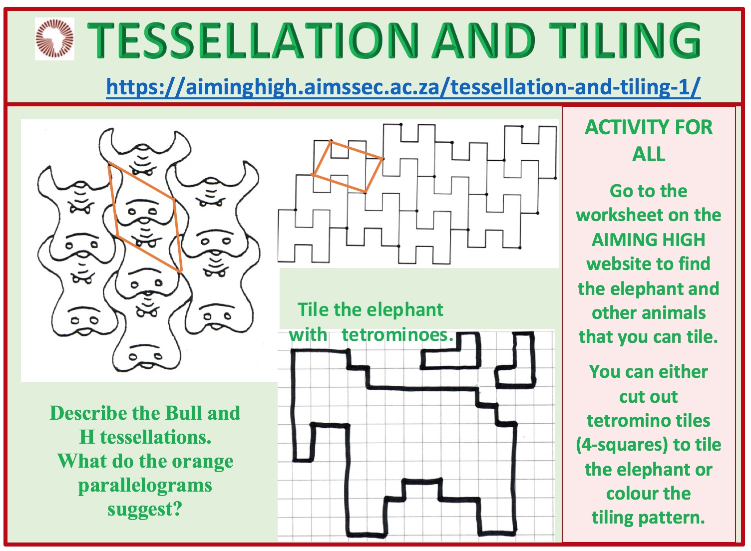 Draw a repeating pattern with the letter H that is similar to the tessellation of bull’s heads. You could cut out an H-shape made up of 7 squares from card and use it as a template to draw around.