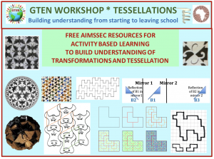 Click here for the Tessellations Reptiles and Fractals workshop video. It starts, for young learners, with filling animal shapes with simple tiles. It continues with investigation of why there are only 7 Frieze patterns and 17 Wallpaper patterns and then investigates period parallellograms. Then there are examples of reptile tiling and fractals.