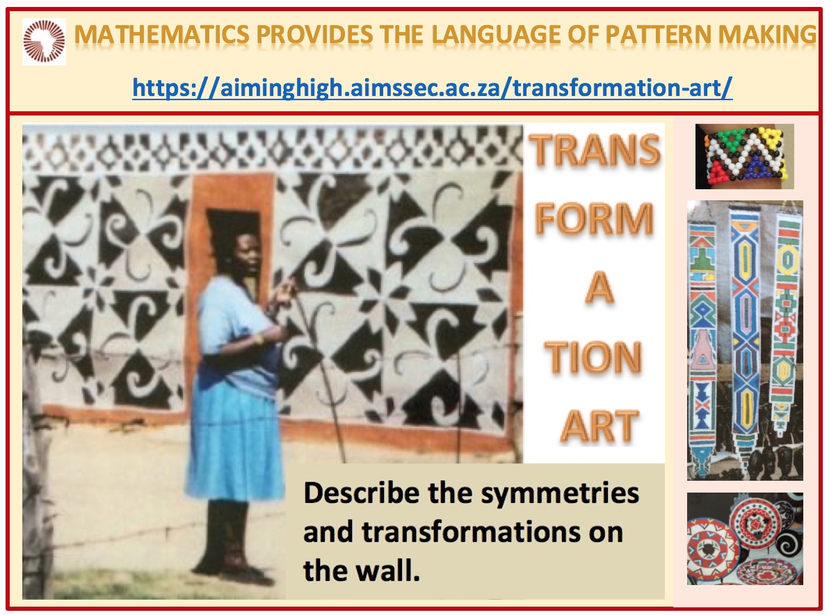 The wall painting on the house in this photo shows geometric transformations: reflections, rotations and translations. The symmetries of a design are the transformations that leave the pattern looking exactly the same.