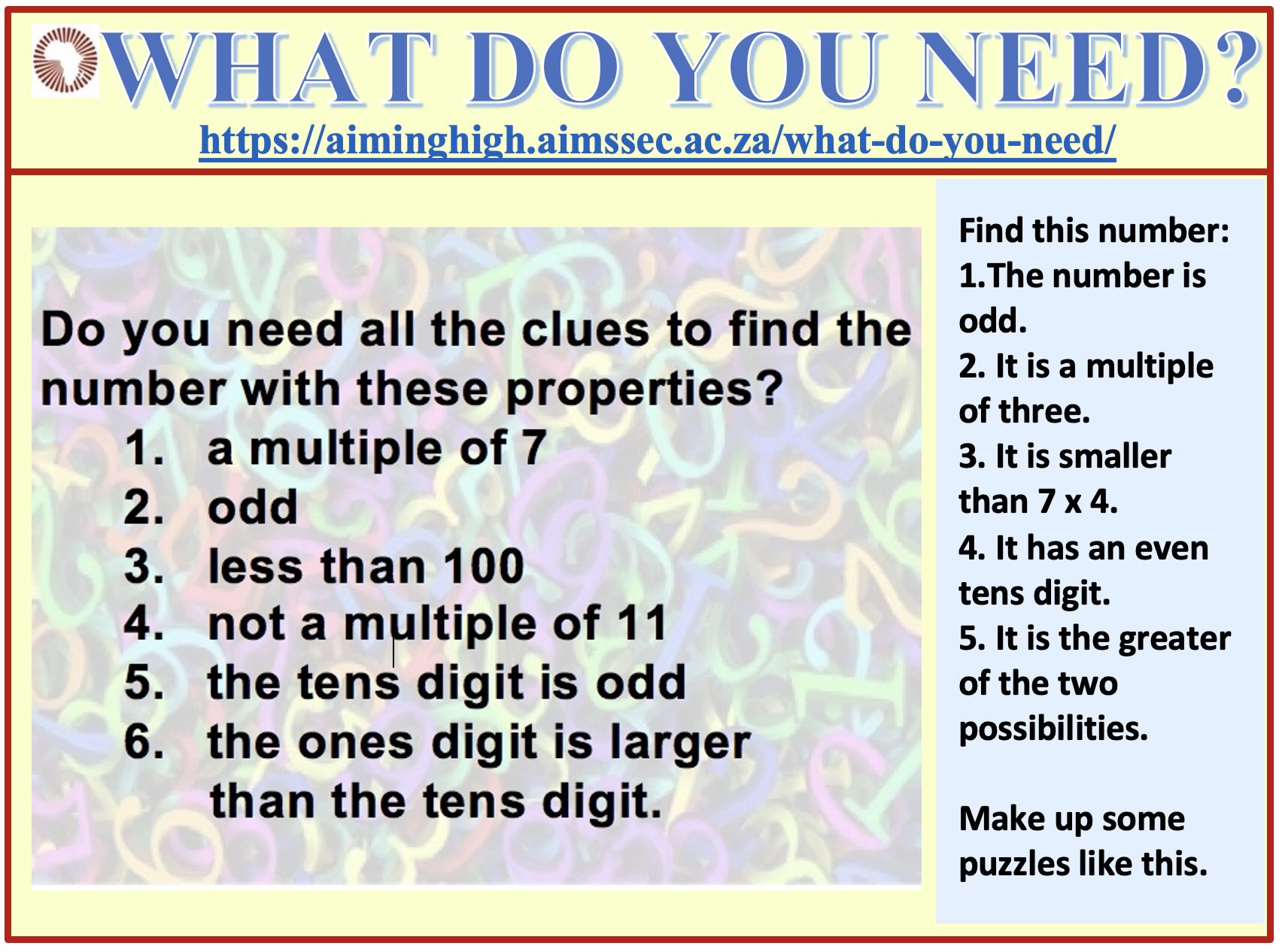 Four of the clues are true but do nothing to help in finding the number. Four of the clues are necessary for finding it.