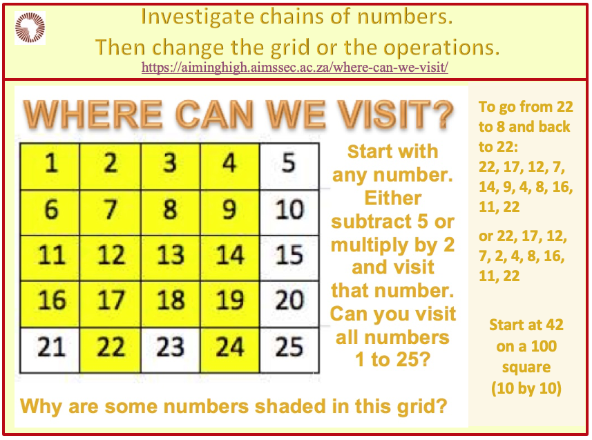 - Choose another number to start. Which numbers can you visit?